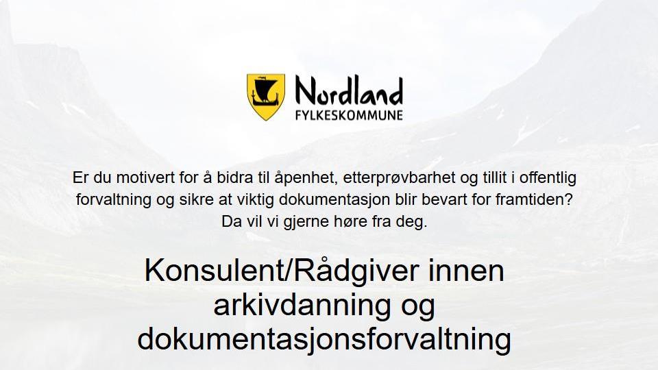 Er du vår nye kommunekontakt? Arkiv i Nordland søker konsulent/rådgiver innen arkivdanning og dokumentasjonsforvaltning.