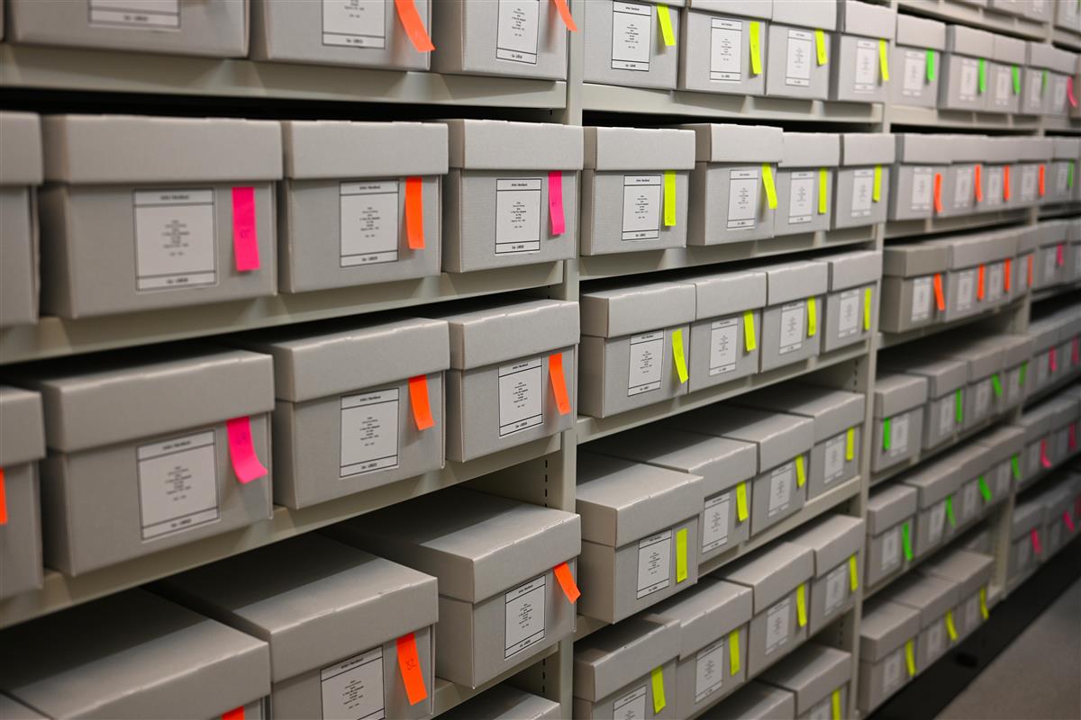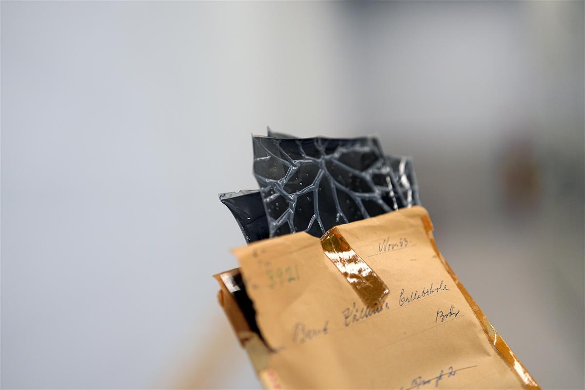 Arkivbokser med teststrips markeres, og sjekkes etter en stund for å se om det har blitt registrert nedbryting av acetat.